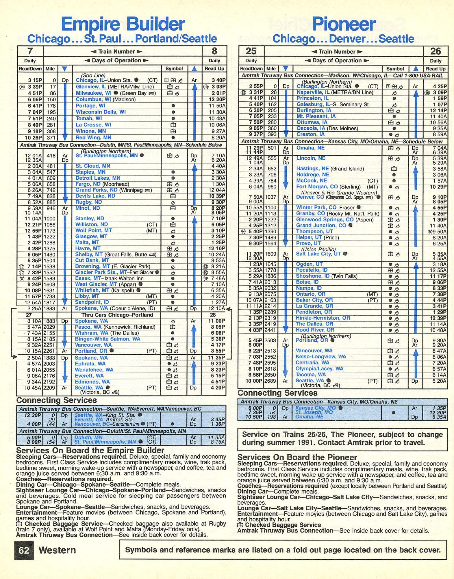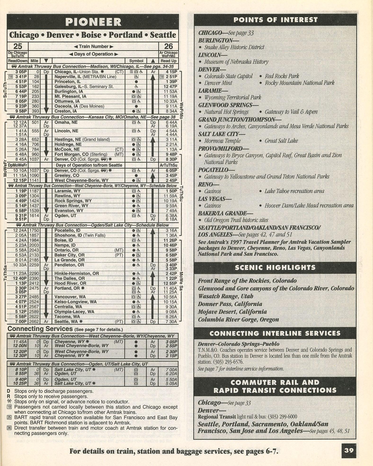 The last Pioneer timetable, November 1996. Courtesy The Museum of Railway Timetables. http://www.timetables.org/